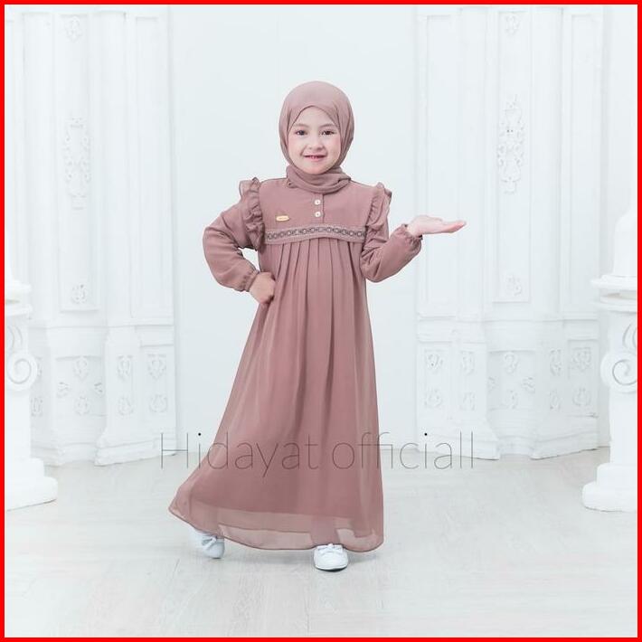 Baju Gamis Anak Model Terbaru Ceruty Full Furing Dengan Pashmina