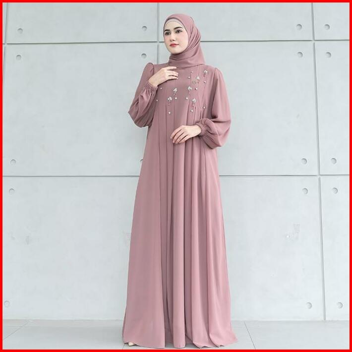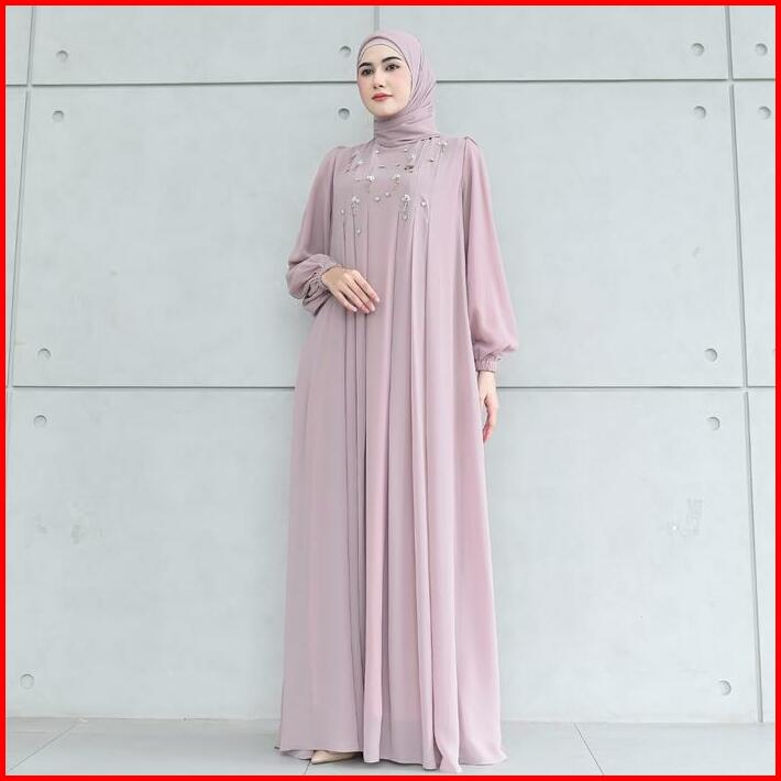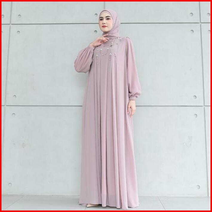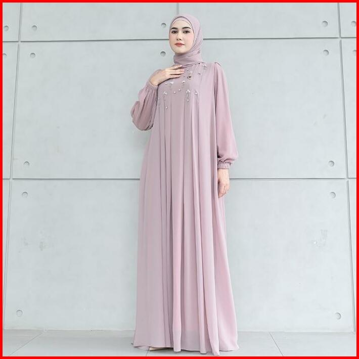 Aisyalina Id Set Elena Series Pashmina Segiempat Bahan Ceruti Armany Baby Doll Aksen Payet Full Furing Gamis Wanita Eleg