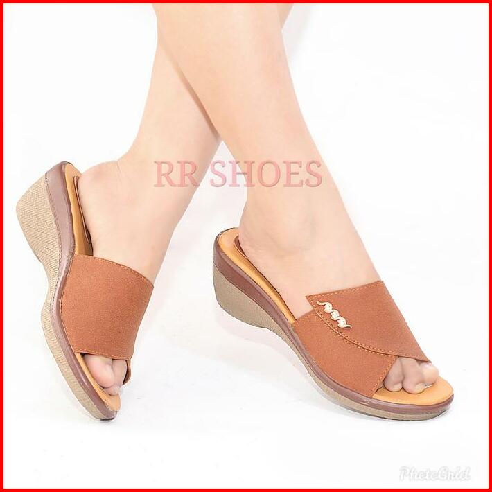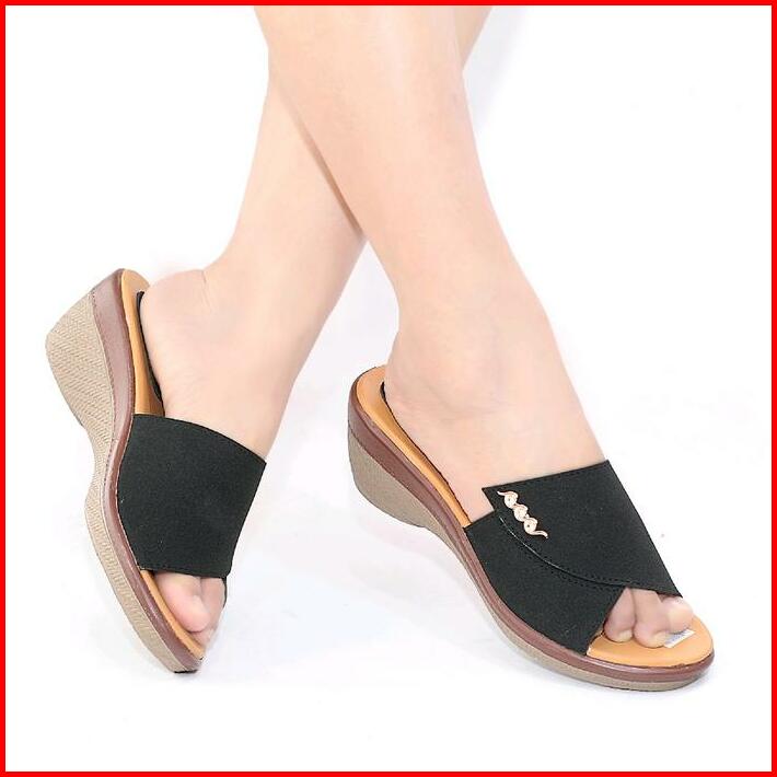 Sandal Wanita Wedges Sendal Perempuan Selop Slop Hak Tinggi Pesta Kondangan Kekinian Terbaru High Heels Ibu Ibu Terlaris
