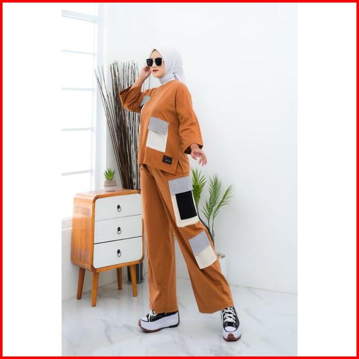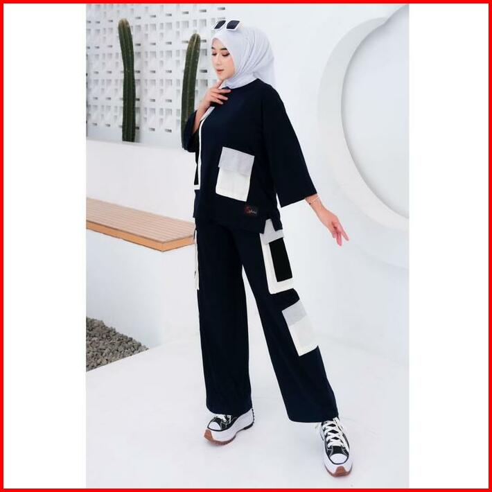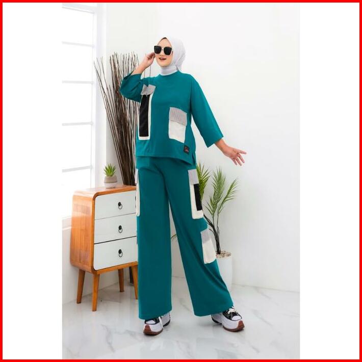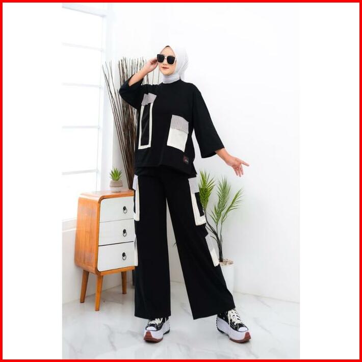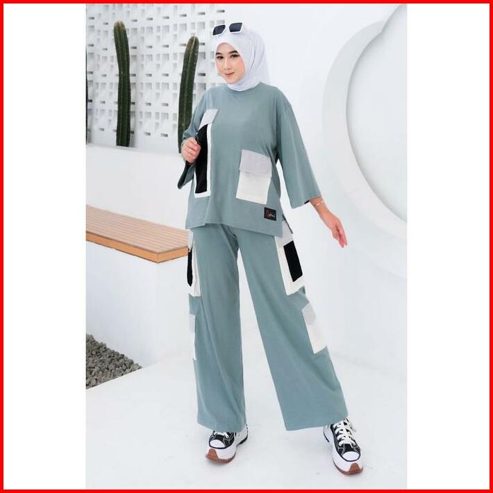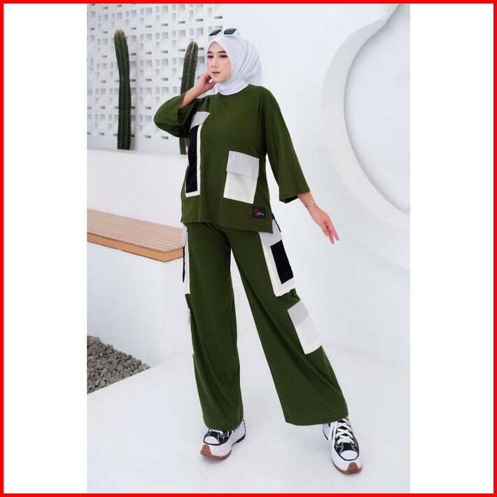 Setelan Wanita Cargo Terbaru Oneset Sylvia St.01.27 Atasan Celana Combed Karet Tebal High Muslim Panjang Bawahan Baju Hi