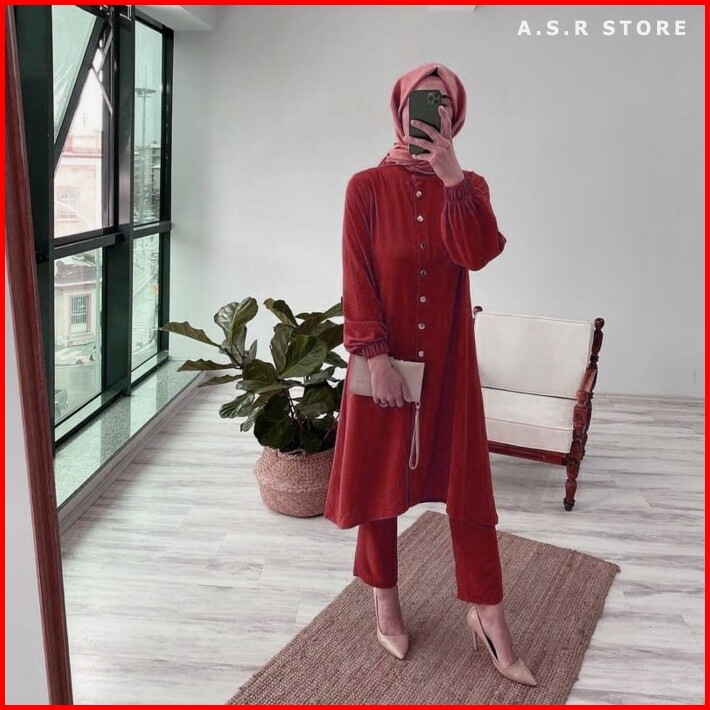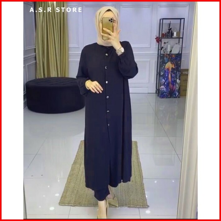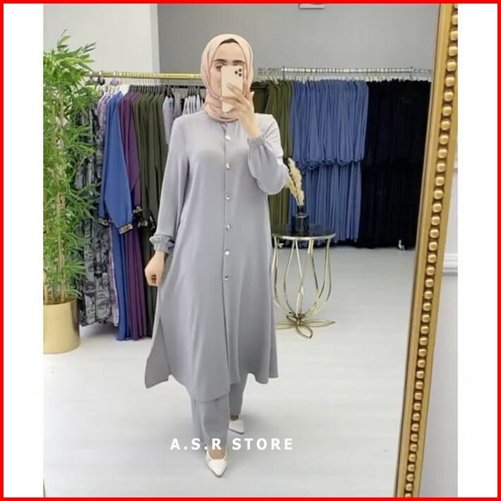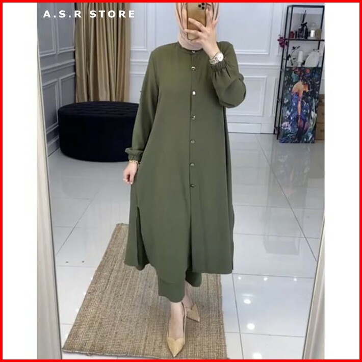 Setelan Wanita Mio Long Set Tunik Plus Celana Setcel Basic Muslim