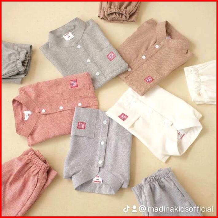 Koko Setelan Anak Laki-laki Pakaian Baju Lengan Pendek Madina Ibrahim Muslim Kurta Katun