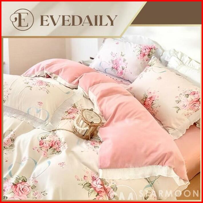 Bed Cover Set Rose Love Mix Plain Peach Puff