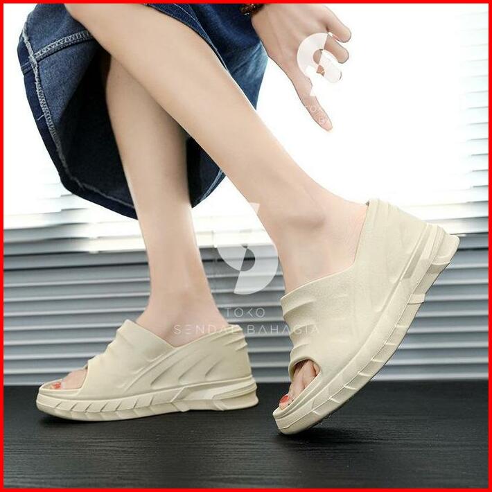 Sendal Slop Wedges Wanita Korean Import Super High Heels Tinggi 9cm Bahan Sandal Karet Ringan 0020