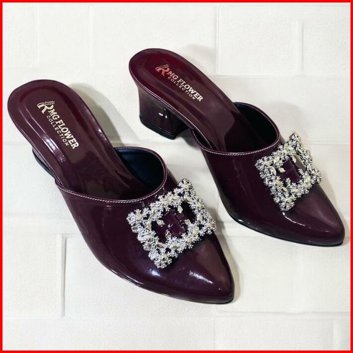 Sandal Wanita Rmg Flower-winda Terbaru 2025 Burgandi Kondangan Wisuda High Heels