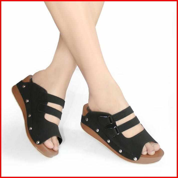 Sandal Wanita Wedges Sendal Perempuan Selop Slop Hak Tinggi Pesta Kondangan Kekinian Terbaru High Heels Ibu Ibu Terlaris