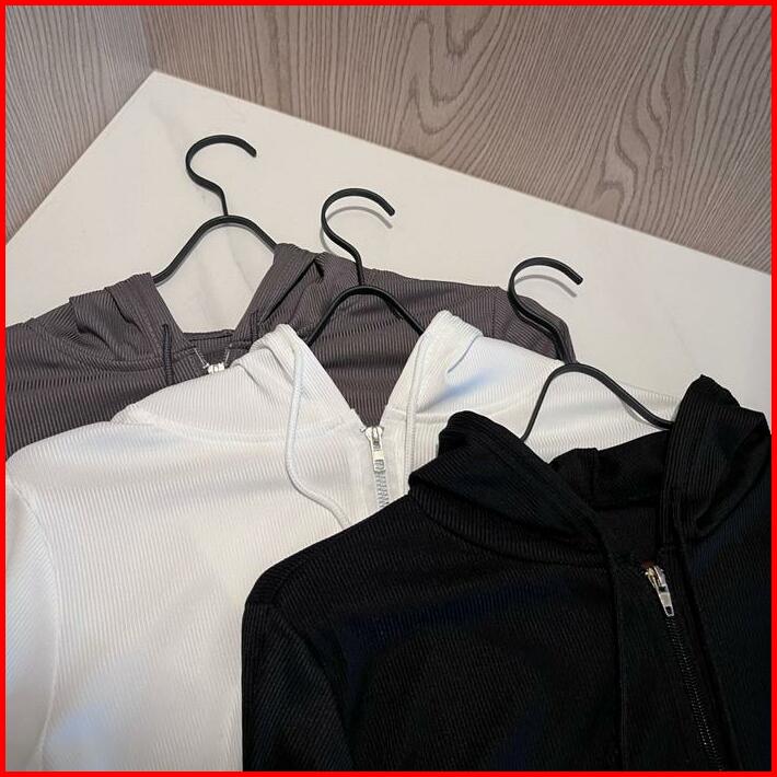 Sweater Hoodie Wanita Lengan Panjang Zipper Jaket Polos Korean Cewek Fashion Terkini Bahan Premium Simple Jumper Basic F