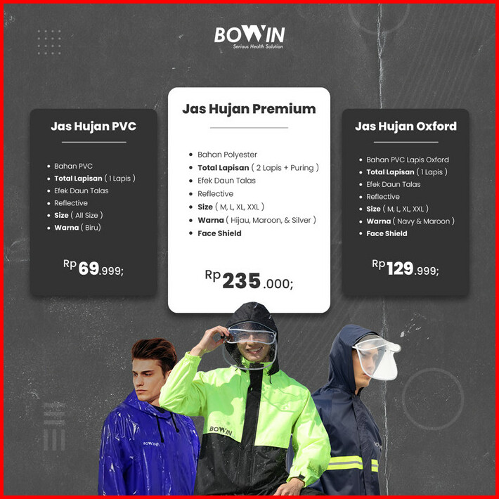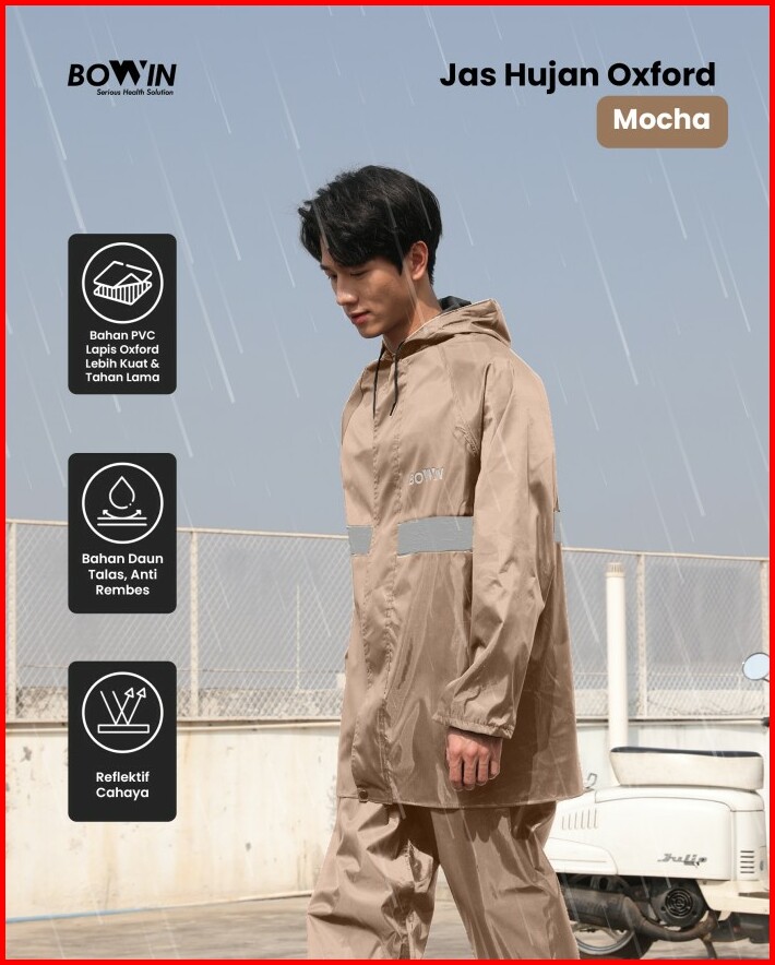 Bowin Jas Hujan Oxford Anti Bakteri Anti Rembes Bahan Tebal Karet