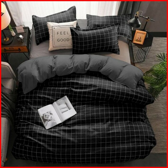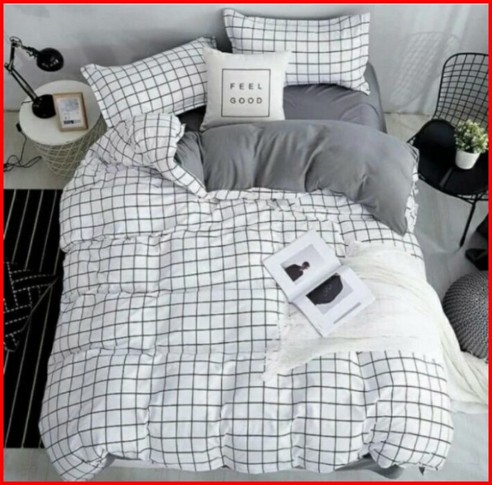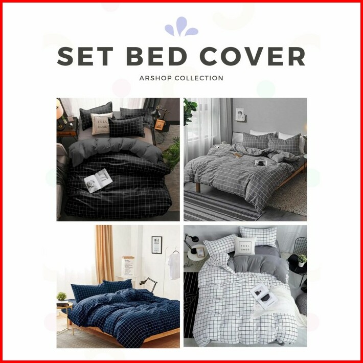 Set Bed Cover Motif Kotak Kotak Ukuran King 180x200 Queen 160x200