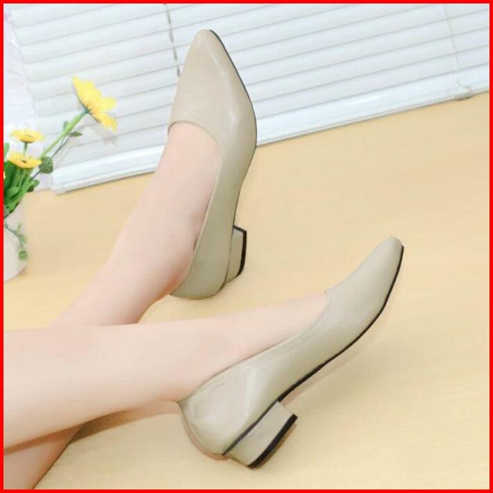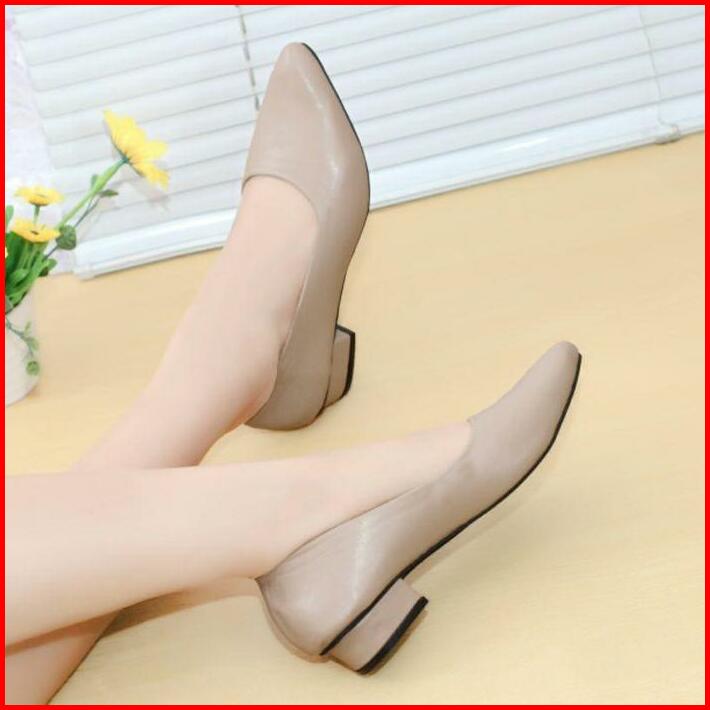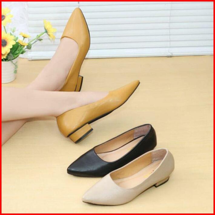 Sepatu Wanita 3cm Bahan Halus Heels Shoes Hak Pendek 1-3 Cm High Hitam