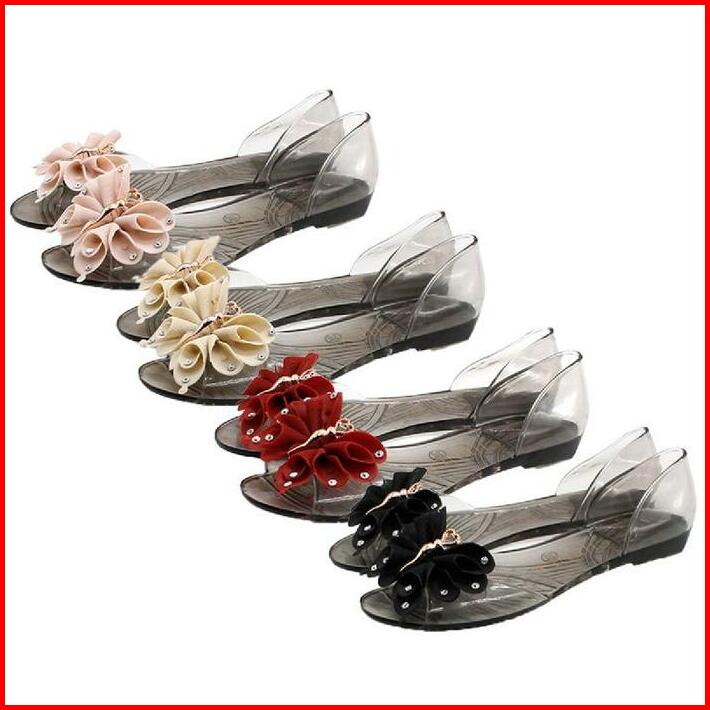 Guvdiv Sepatu Wanita Cantik Sendal Pesta Hak Tinggi Kaca Transparant Dasi Kupu-kupu Good Quality Merah Putih Sandal Sand