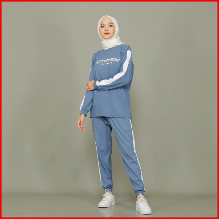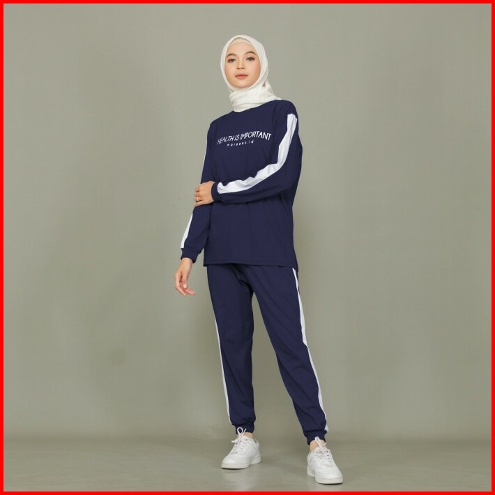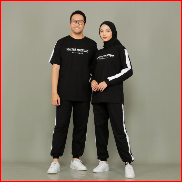 Setelan Baju Olahraga Wanita Dan Pria Couple Senam Joging Muslim Terba
