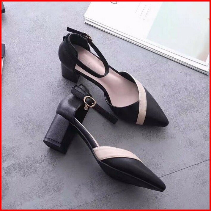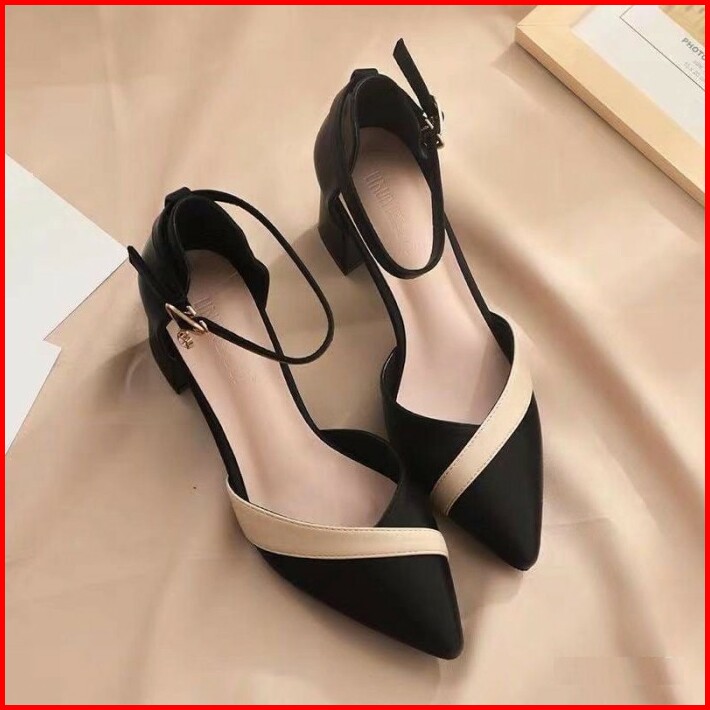 Mivelshoes Sepatu Wanita Black Hitam Ja20 High Heels Hak Tinggi 5cm Kotak Tahu Premium Fashion Korea Pesta Formal Kerja