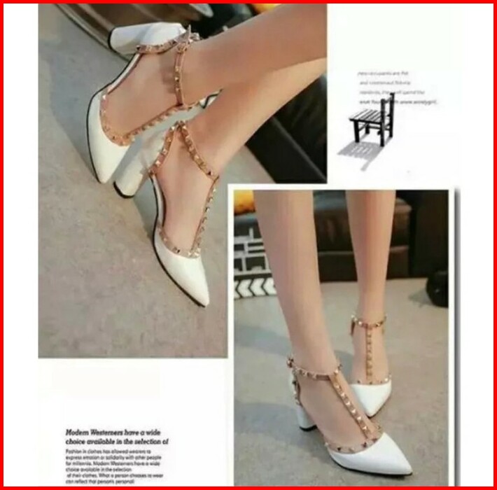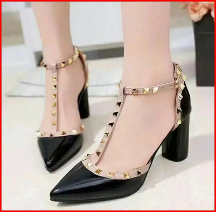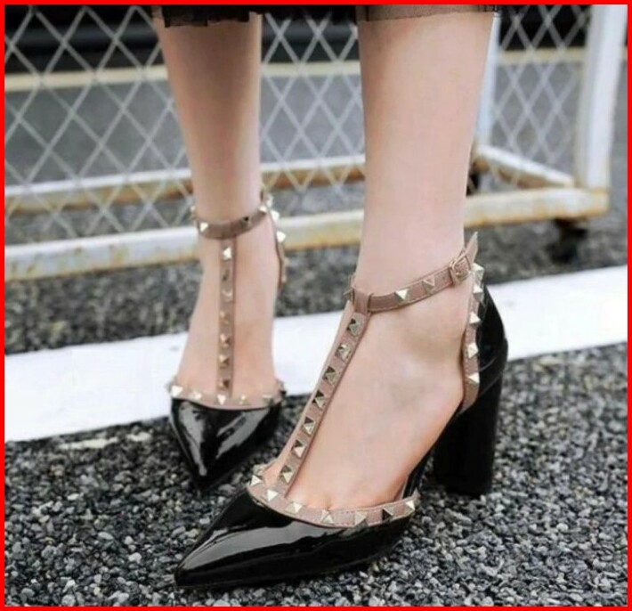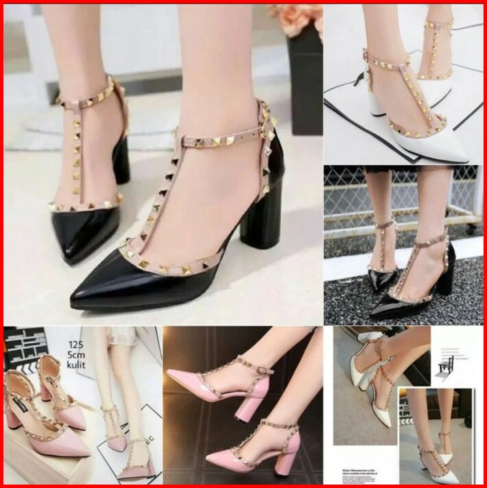 Sepatu Wanita High Heels Hak 5cm Kotak Tahu Shoes Valentino Ul50 Sepatu Kerja Kantor Pesta Formal Kondangan Kasual Gloss