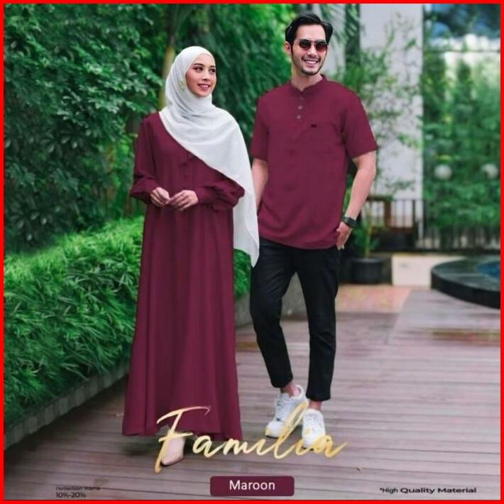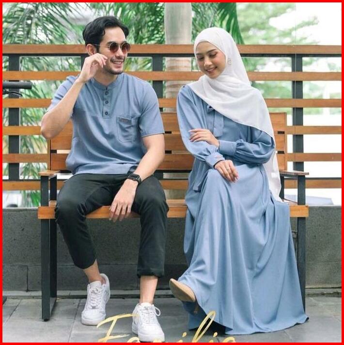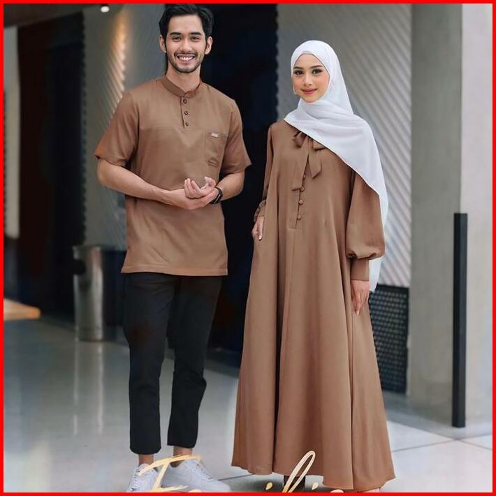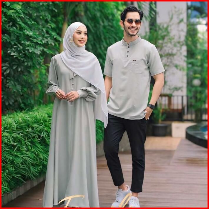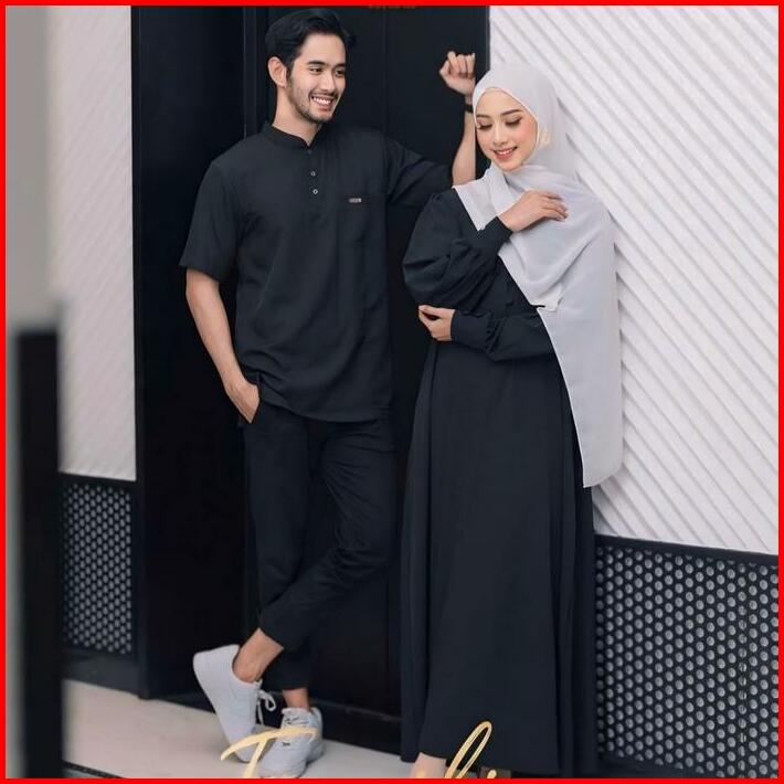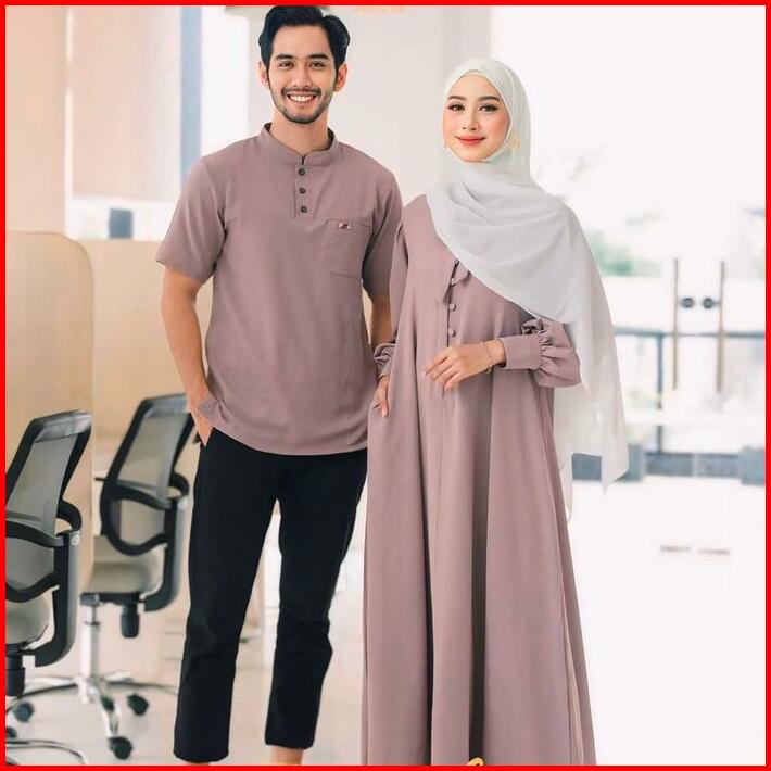 Couple Livia Shakilla Polos Koko Gamis Pasangan Set Lebaran Baju Muslim Wanita Sarimbit Syari Dewasa Keluarga Setelan Dr