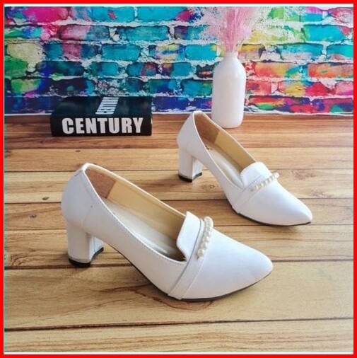 Sepatu Pantofel Wanita Mutiara Tm13 Premium Sepatu Kerja Kantor Pesta Kondangan Formal High Heels Hak Tinggi 5 Cm Kotak
