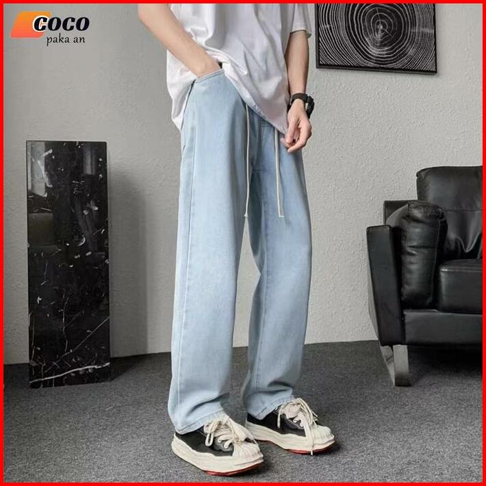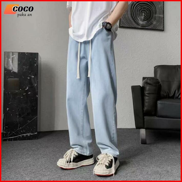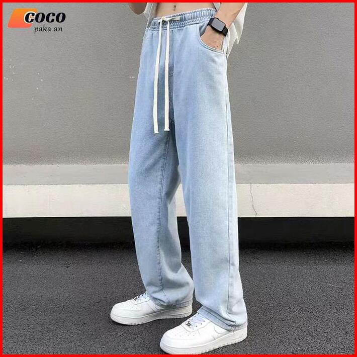 Celana Panjang Pria Jeans Pria Pinggang Karet Celana Kulot Pria Oversize Jeans Panjang Pria Baggy Pants Celana Di Bawah