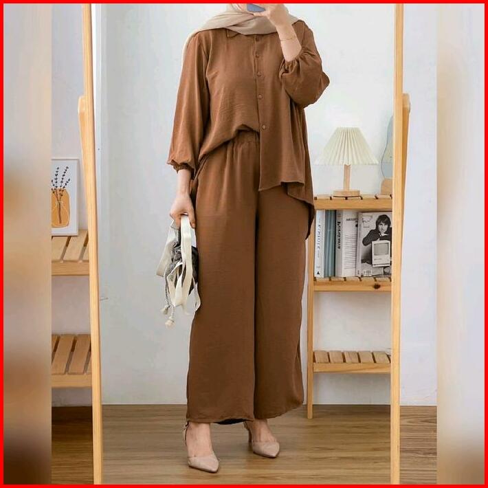 Azalea One Set Jumbo Ld 120 Cm Setelan Atasan Tunik Muslim Wanita Dewasa Lengan Balon Full Kancing Kerah Kemeja Kain Cri