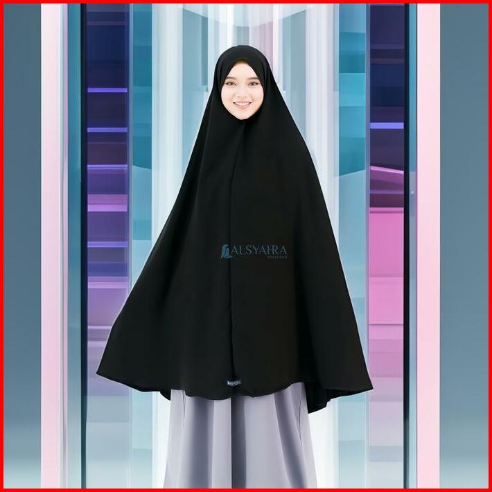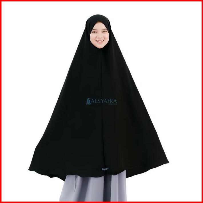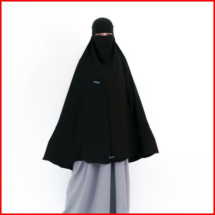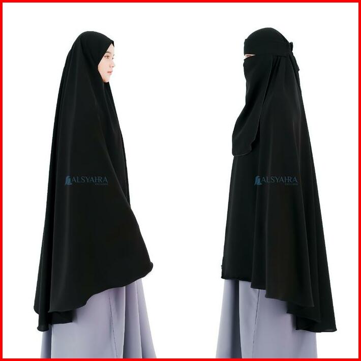 Alsyahra Exclusive Set Khimar Marwah Non Pet Niqab Bandana Xxl Jetblack Muslim Syari Jilbab Kerudung Hitam Pekat
