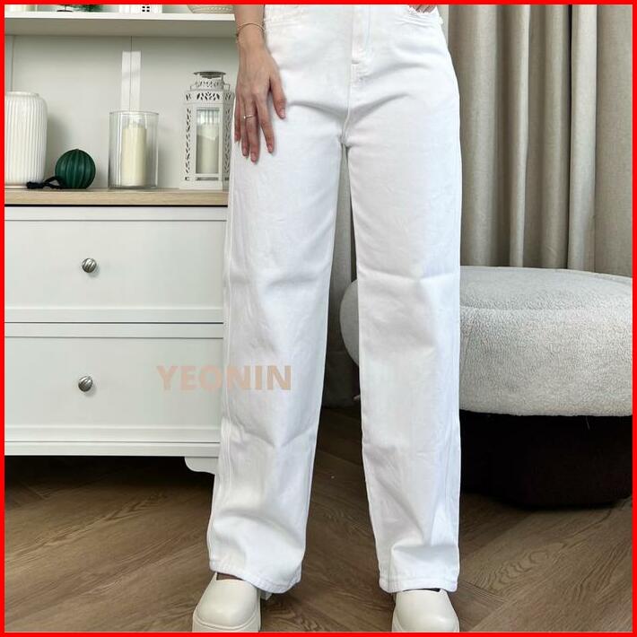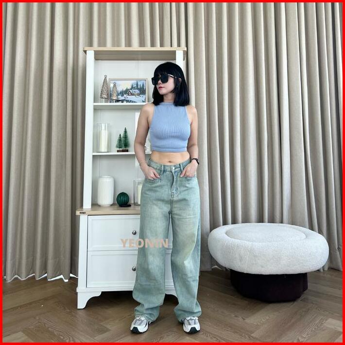 Yeonin Celana Panjang Wanita Baggy High Waist Light Blue And White Jeans Jeans Premium Quality 89