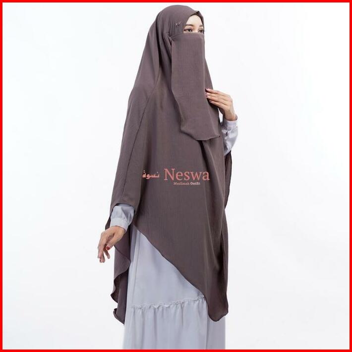 Neswa French Khimar Jumbo Free Cadar Tali Syari Crinkle Airflow Premium Hijab Traveling Fk Antem Panjang Cantik Muslim K
