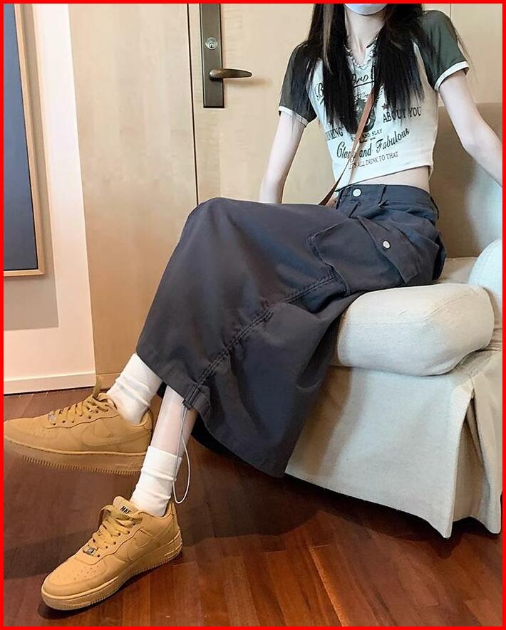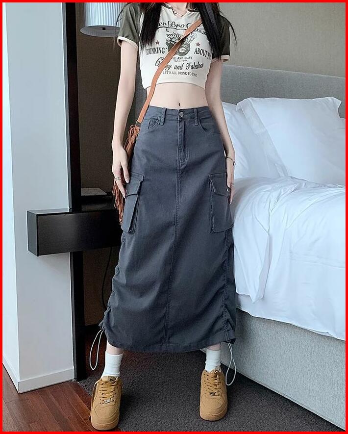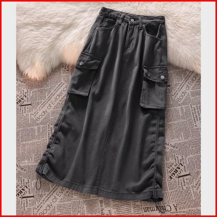 Cargo Rok Jeans Wanita Korea Style Rok Jeans A-line Rok Highwaist Rok Denim Midi