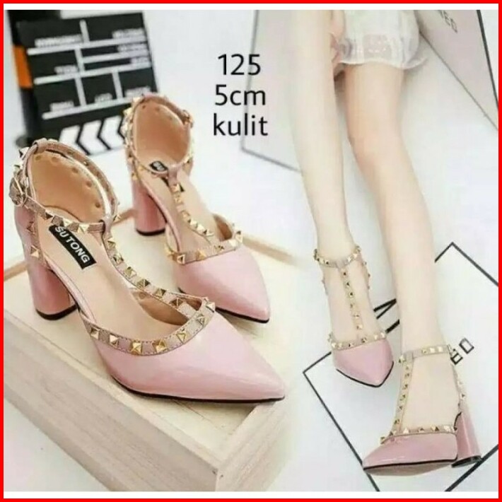 Mivelshoes Sepatu Wanita Pink Kekinian High Heels Hak 5cm Kotak Tahu Ul50 Glossy Sepatu Kerja Kantor Pesta Formal Kondan