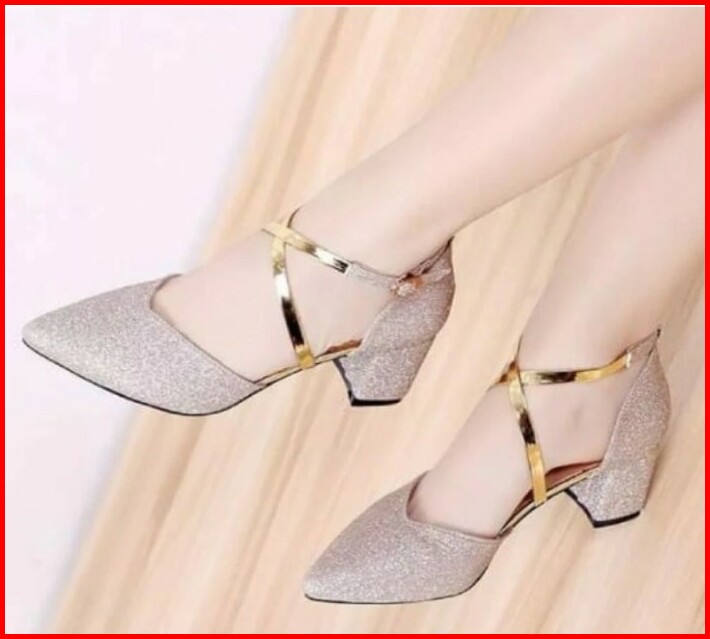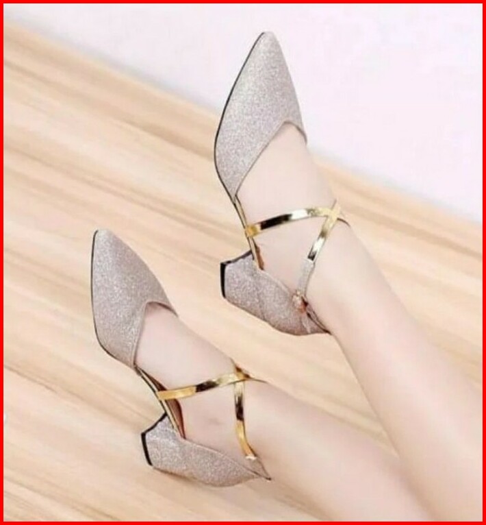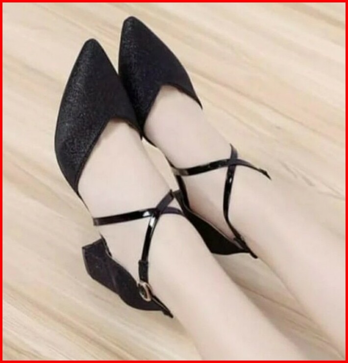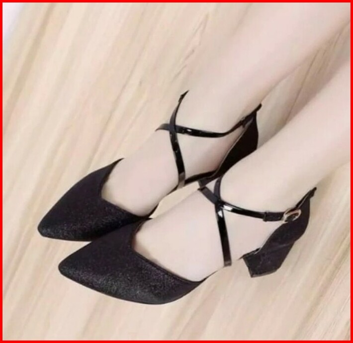 Sepatu Heels Wanita Pantofel Fr09 Black Silver Mewah Hak Kotak Tahu High Heels 5 Cm Sepatu Pesta Kerja Kantor Formal Par