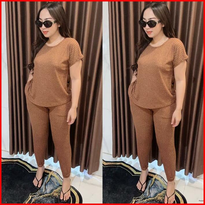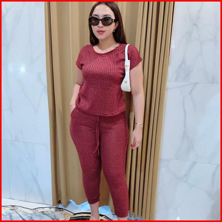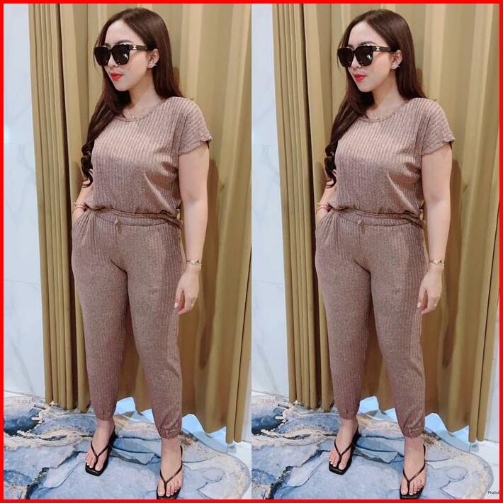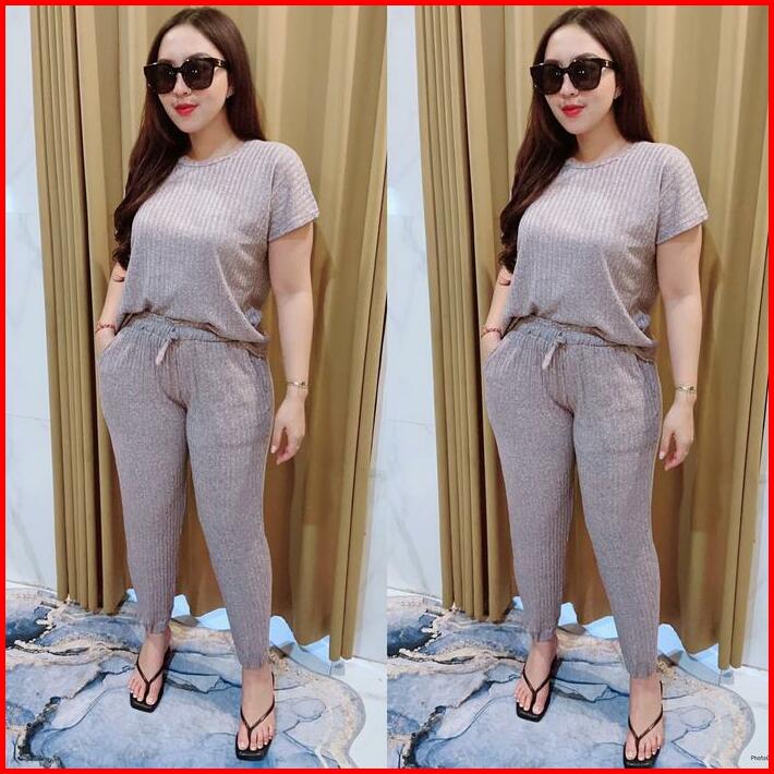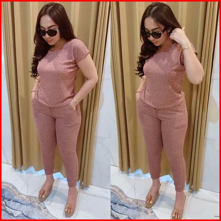 Grosir Natalia Rissa Setelan Atasan Dan Bawahan Joger Motif Polos Material Rib Knite Wanita Basic