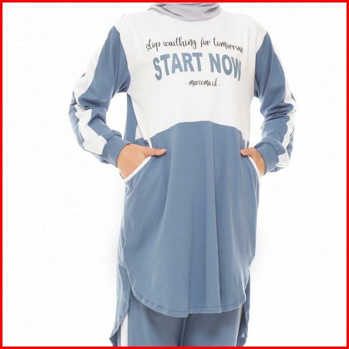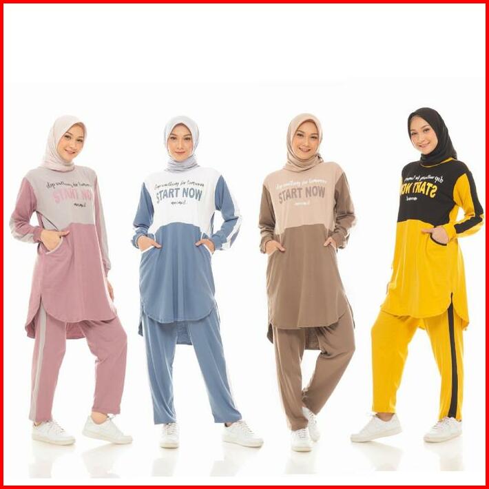 Setelan Olahraga Wanita Jumbo Kekinian Muslimah Katun Combed 20s Baju Celana Sport Hitam Muslim