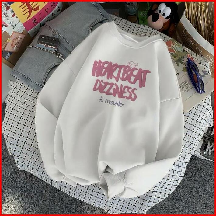 Sweater Crewneck Heart Beat Love Wanita Panjang Oversize Blus Atasan Oblong Hoodie Sweatshirt Baju Atasan Wanita Korean