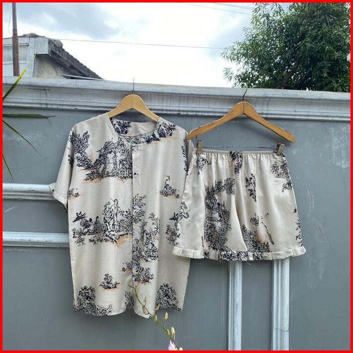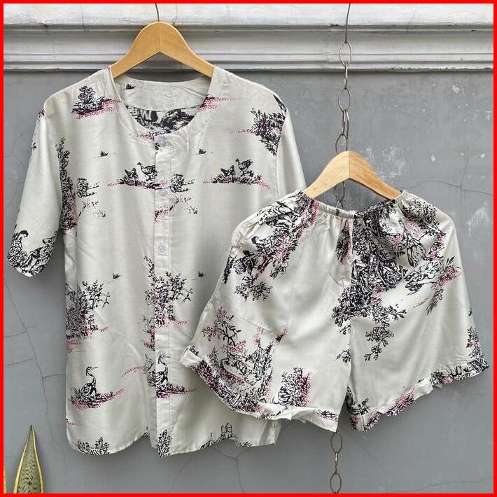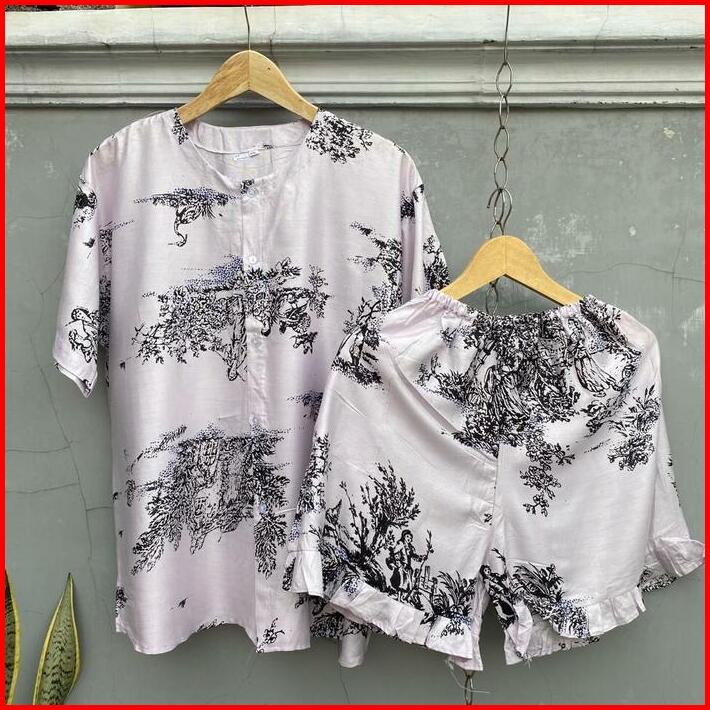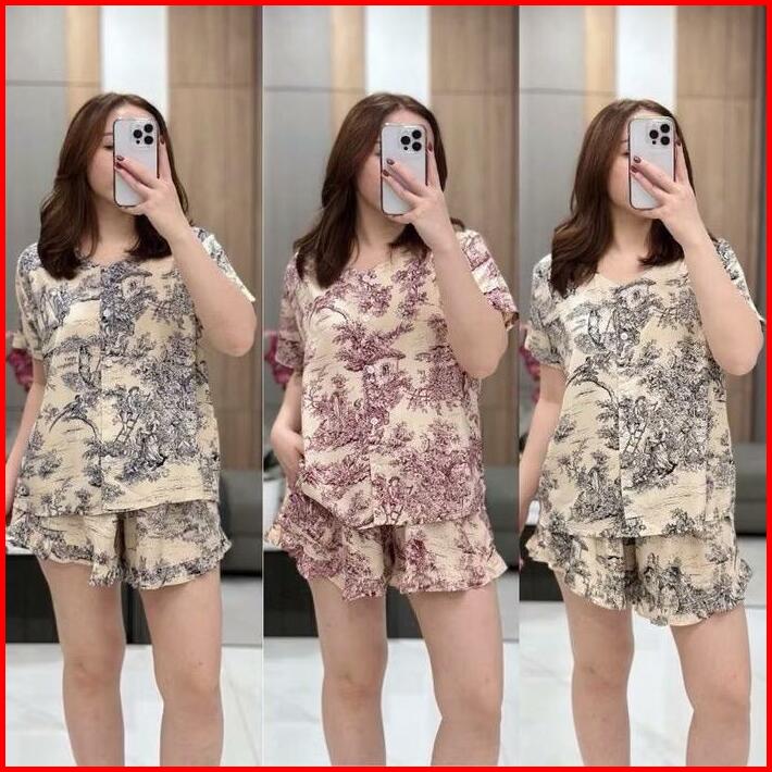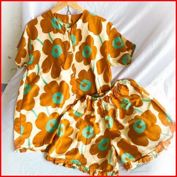 Setelan Wanita Celana Ruffle Baju Kancing Ld 110-120