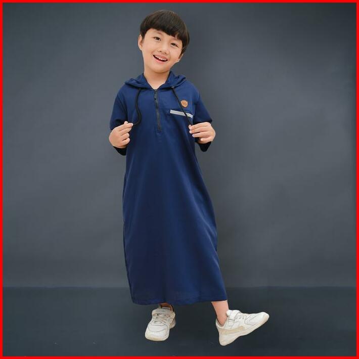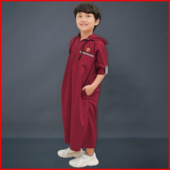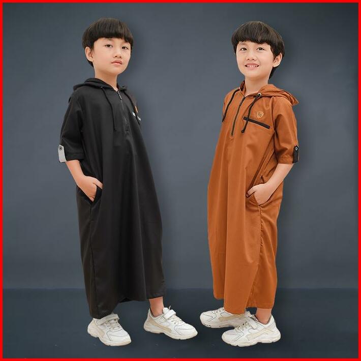 Jubah Gamis Hoodie Lengan 3 4 Katun Toyobo Anak Laki Laki 1-14 Tahun Coklat