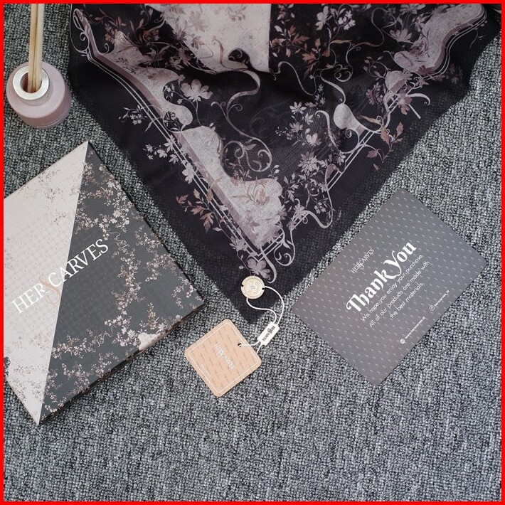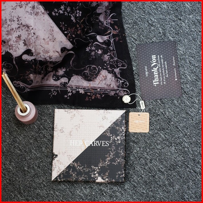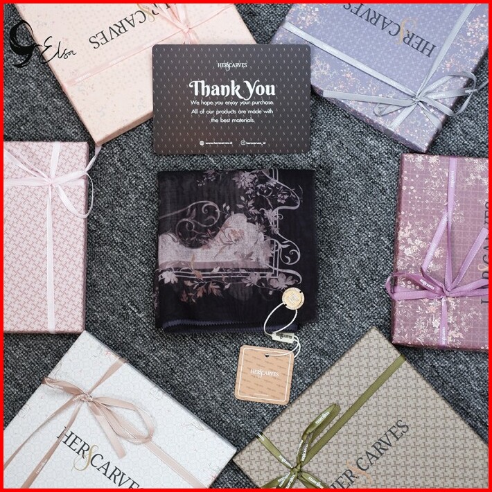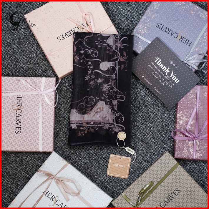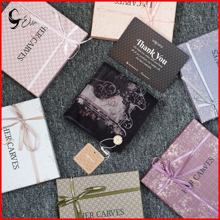 Kerudung Segi Empat Motif Print Her Scarves Box Metal Logo Voal Digital Premium