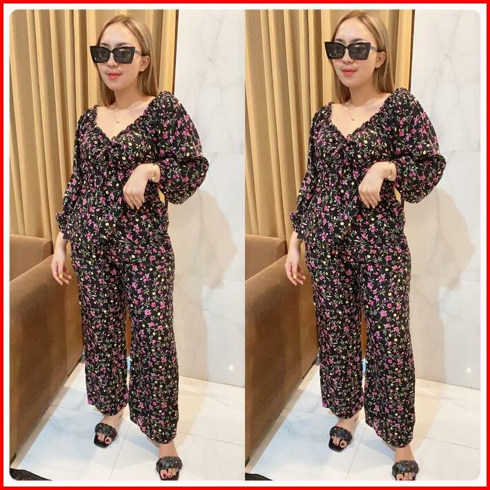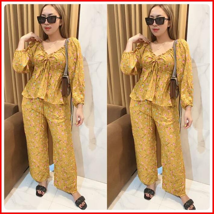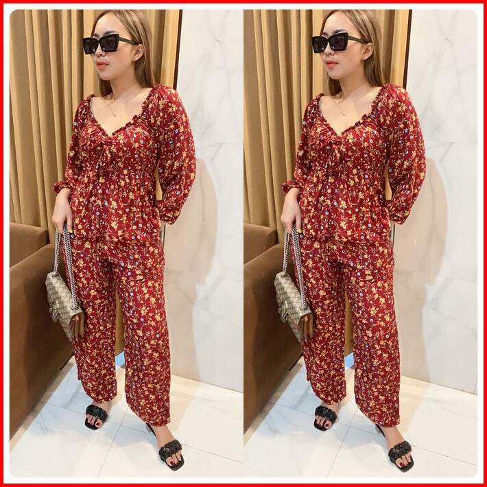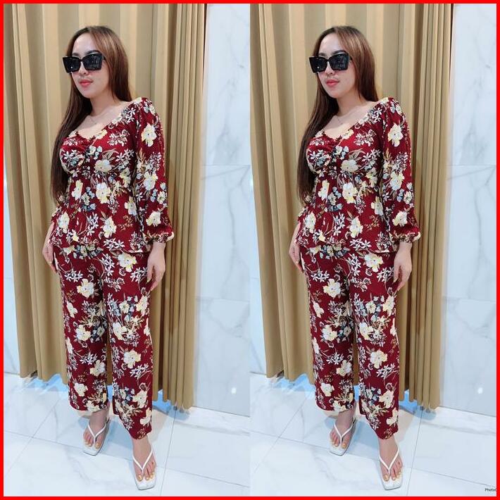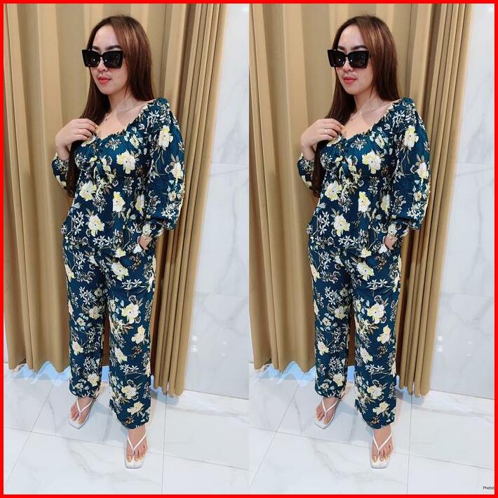 Grosir Natalia Celi Set Bahan Rayon Print Motif Bunga Setelan Atasan Dan Bawahan Wanita Santai Dewasa Baju Katun Bali