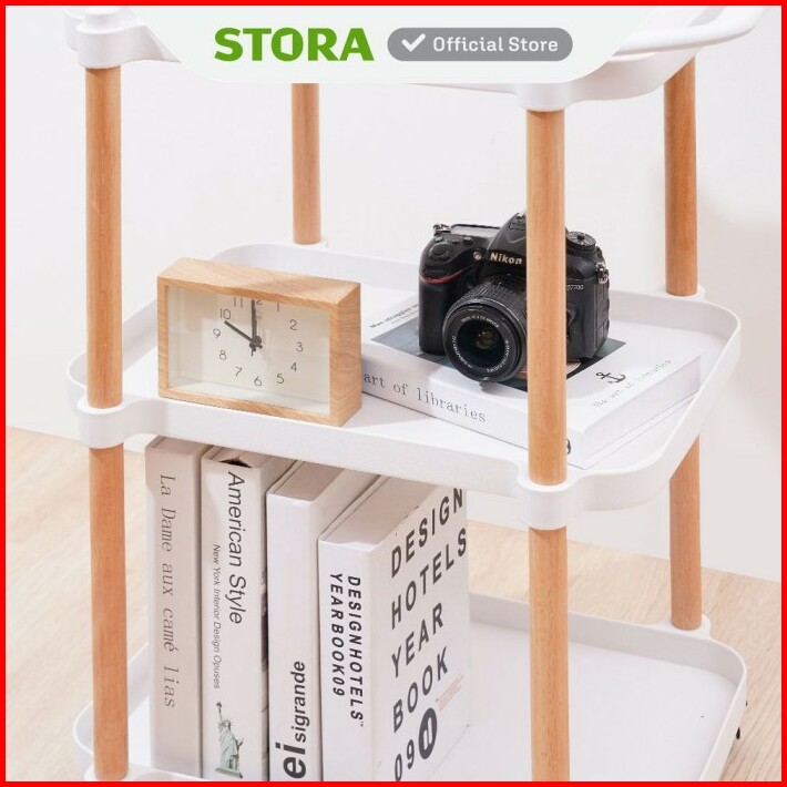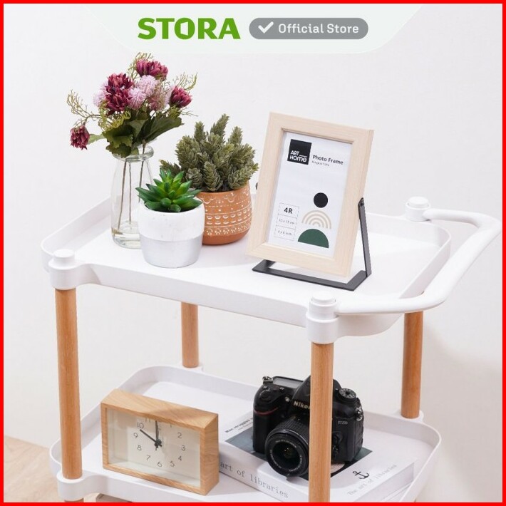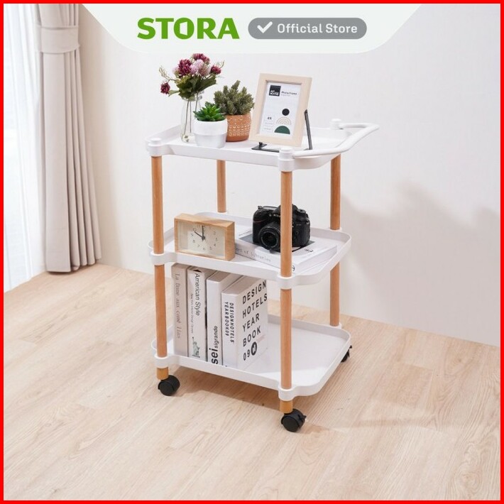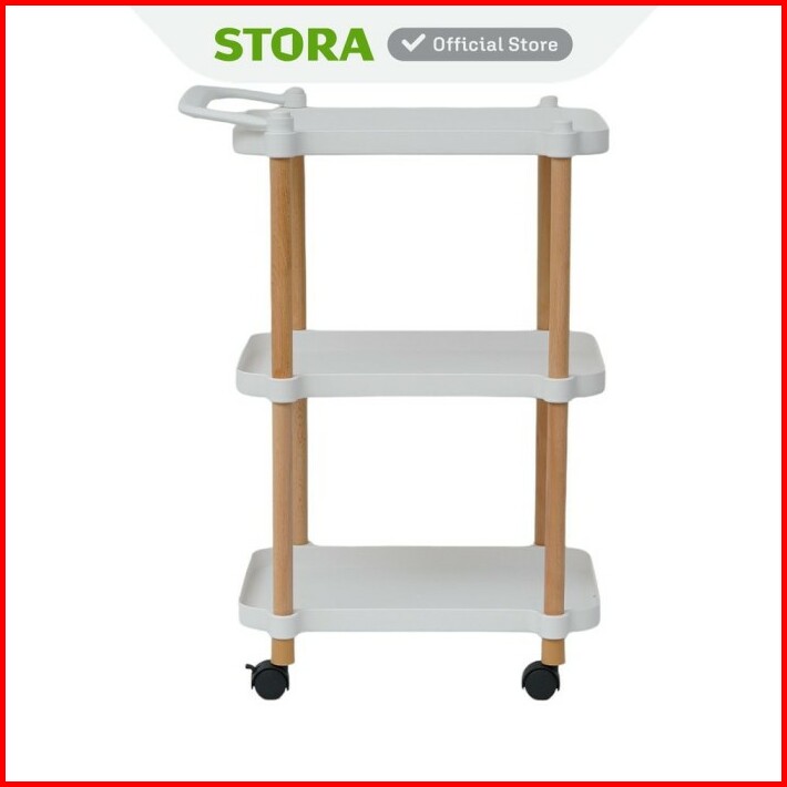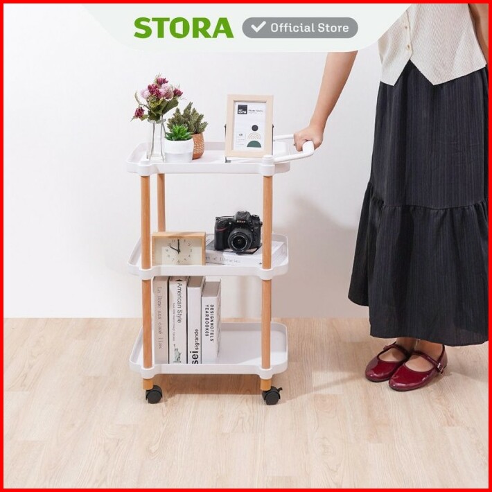 Stora Rak Troli Wood Tempat Penyimpanan Multifungsi Dengan Roda Storage Trolley Wheels Rack Perlengkapan Rumah Tangga