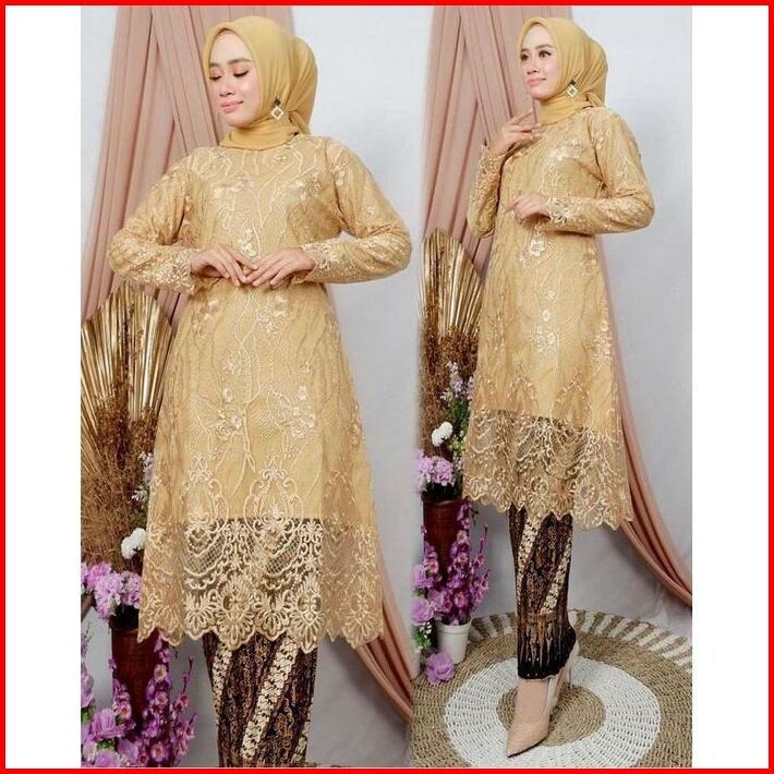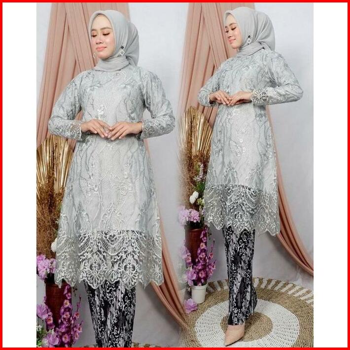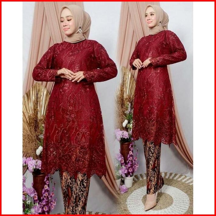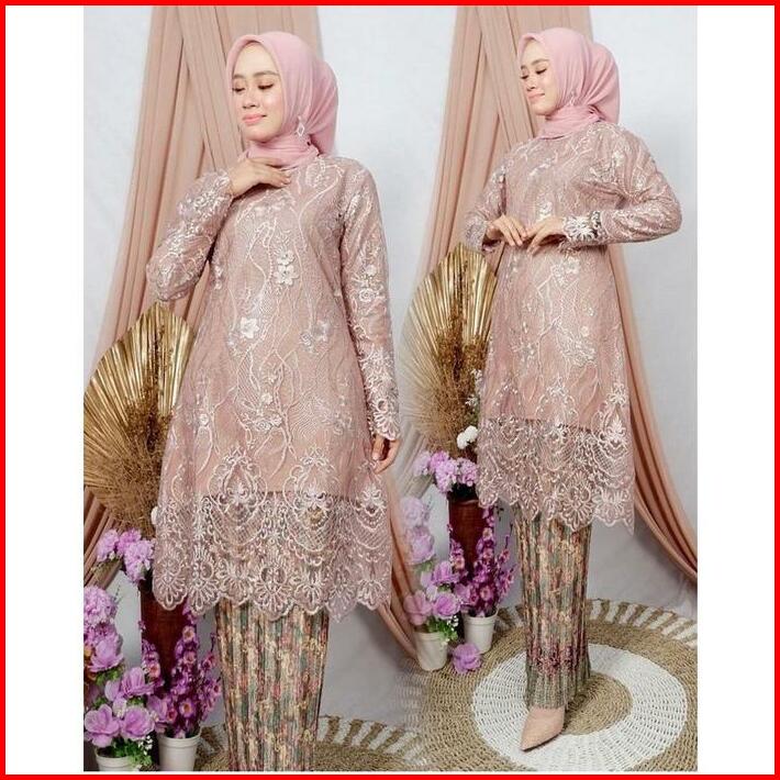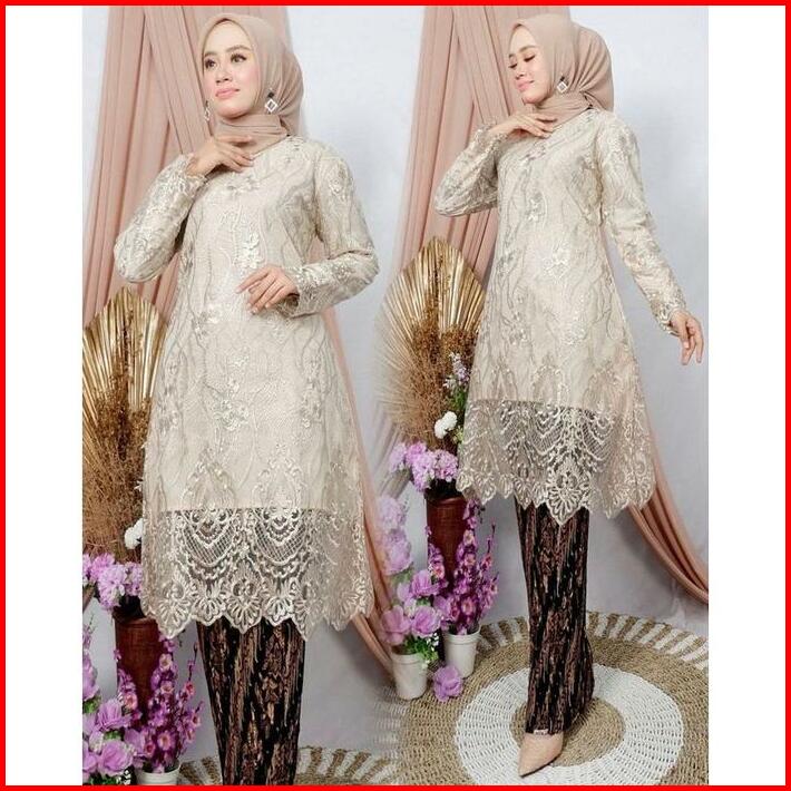 Setelan Tunik Aulia Set Kebaya Kekinian Free Masker Atasan Fit Karet Muslim Mutiara Wanita Mewah Baju Kondangan Pesta Ba