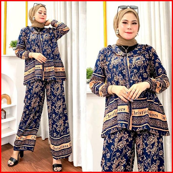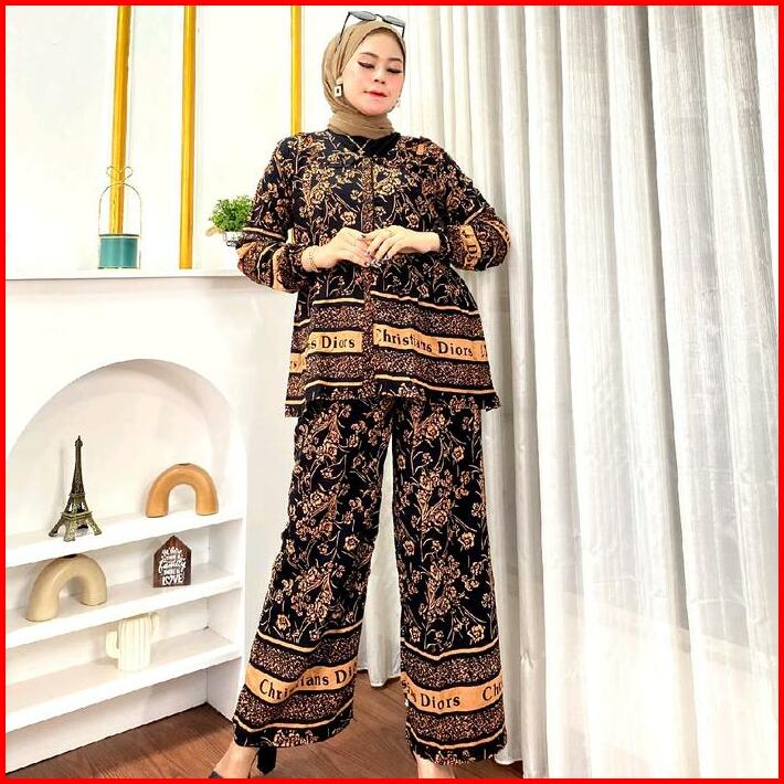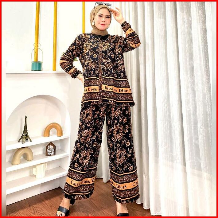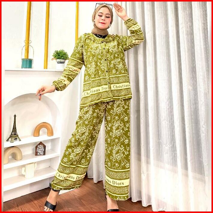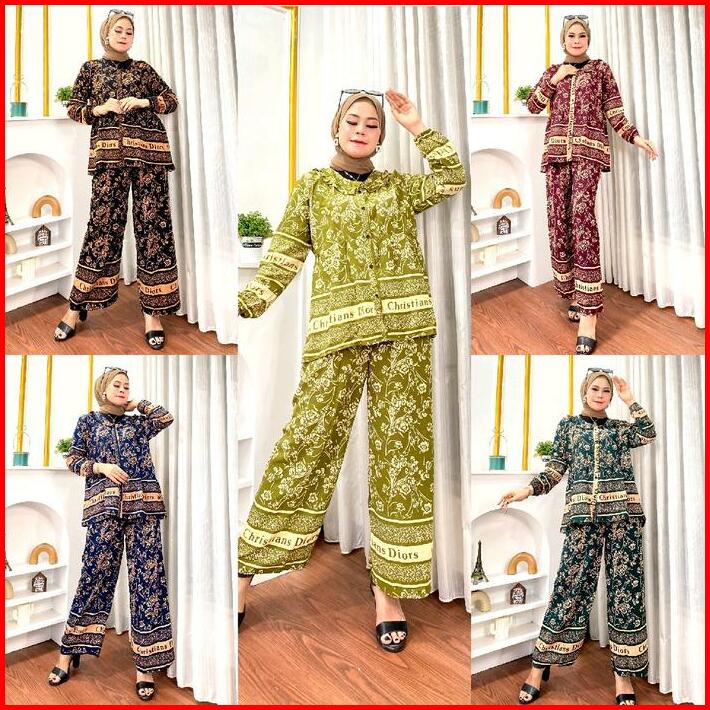Setelan Wanita Dewasa Jumbo Kancing Baju Celana