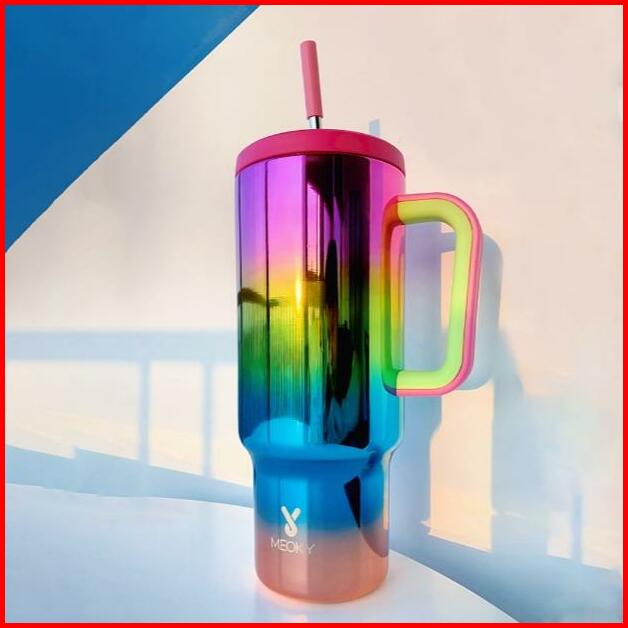 Gelas Minum Meoky 40 Oz 1100 Ml Dengan Tangkai Tutup Anti Bocor Dan Sedotan Kaca Kopi Tersulut Kaca Minum Perjalanan Baj