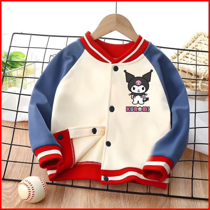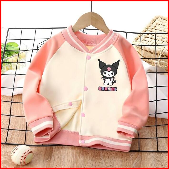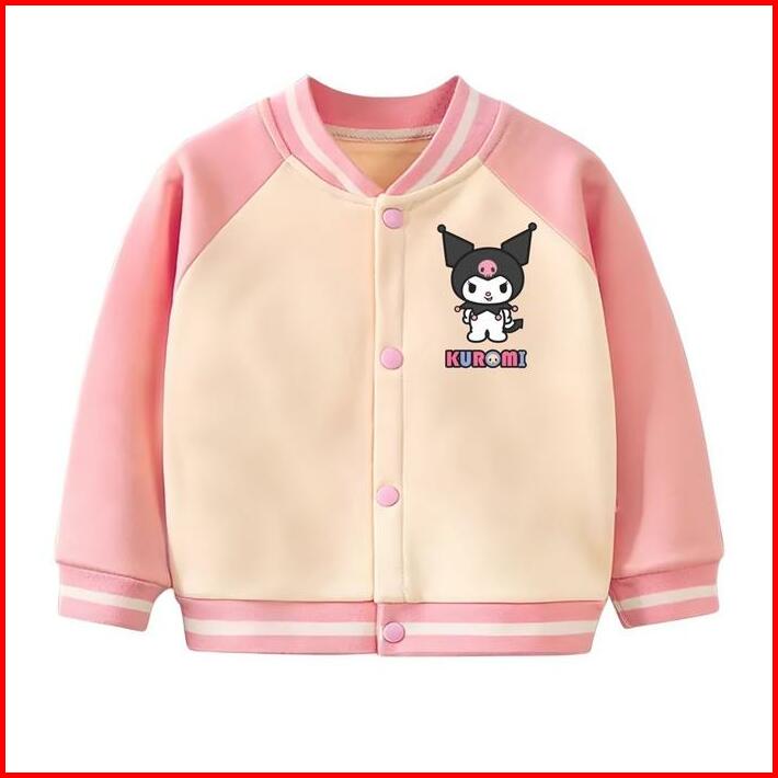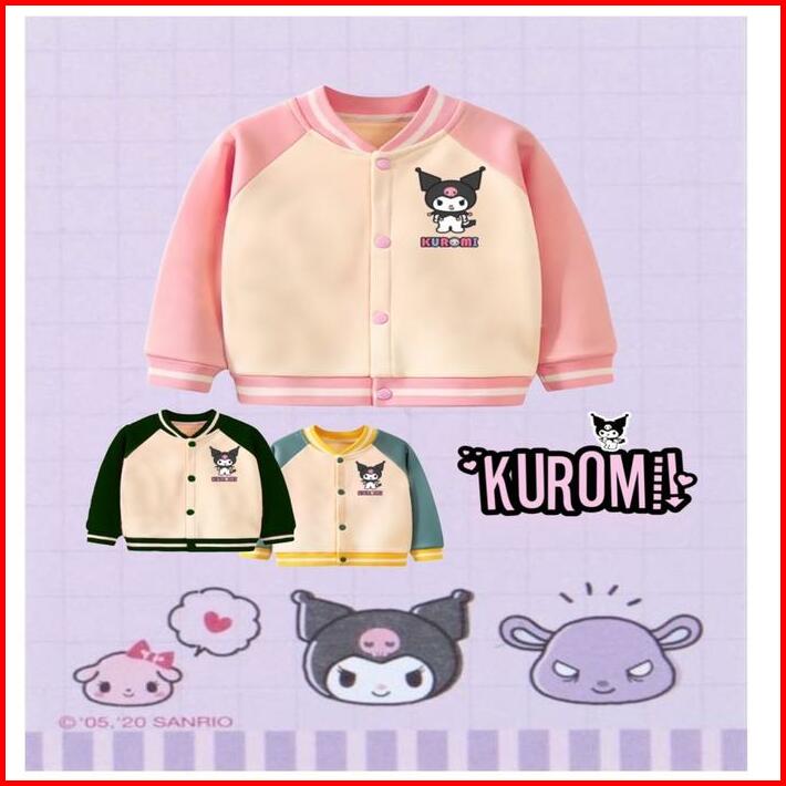 Sweater Anak Perempuan Kuromi Rainbow Varsity Sweater Anak Baseball Varsity Fashion Anak Perempuan Jaket Anak Hoodie