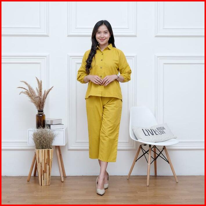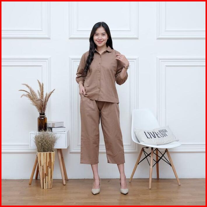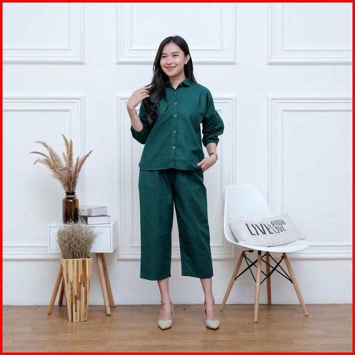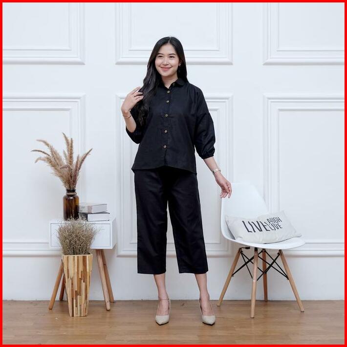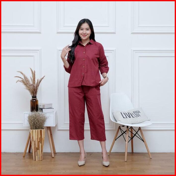 Setelan Wanita Outfit Cewek One Set Crop Linen Polos Nara Set By Bella Set Wanita Busui Terbaru Kekinian
