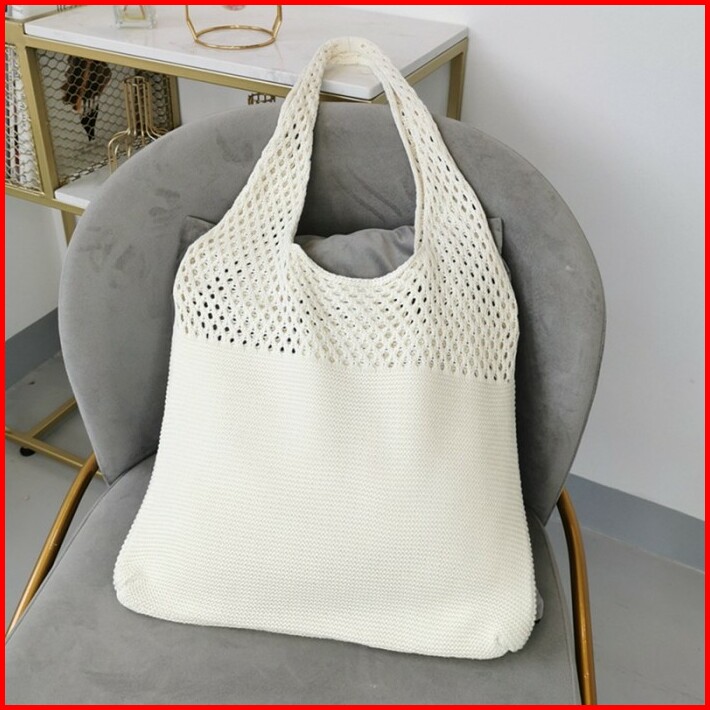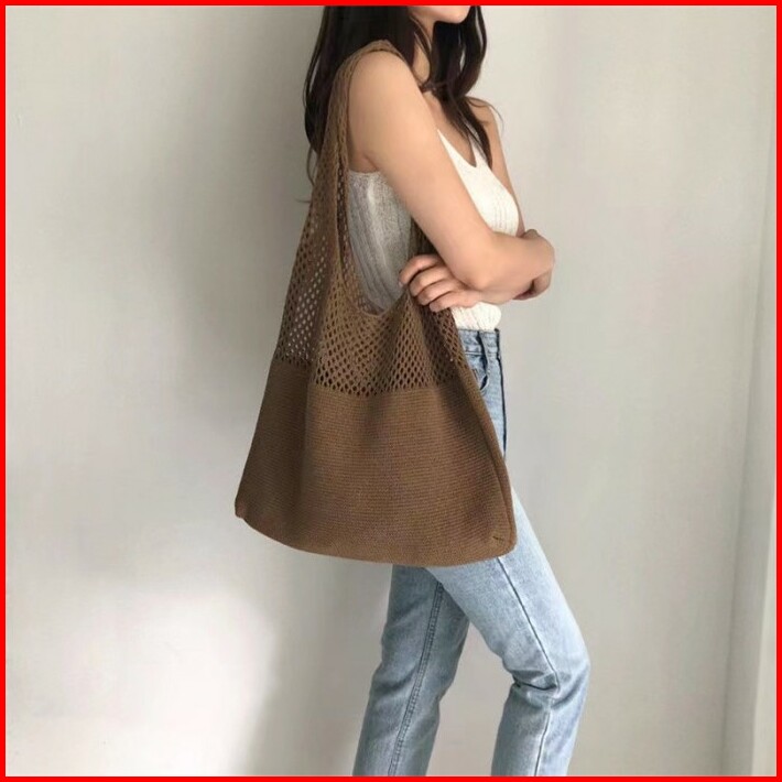 Little Maple Bella Knitted Tote Bag Tas Korea Rajut Besar Pantai T