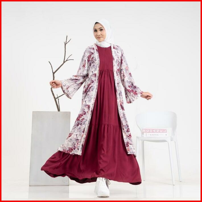 Outer Wanita Panjang Setelan Dress Dewasa Gamis Baju Muslim Rayon Kondangan Remaja Crinkle Lebaran Pesta