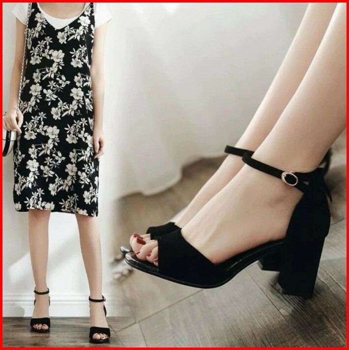 Sepatu Sendal Wanita Pesta Kerja Kantor Kasual Formal Kondangan Hitam Premium Ip13 High Heels 5 Cm Hak Kotak Tahu Brande