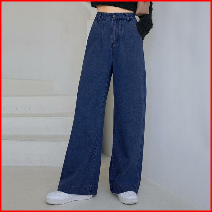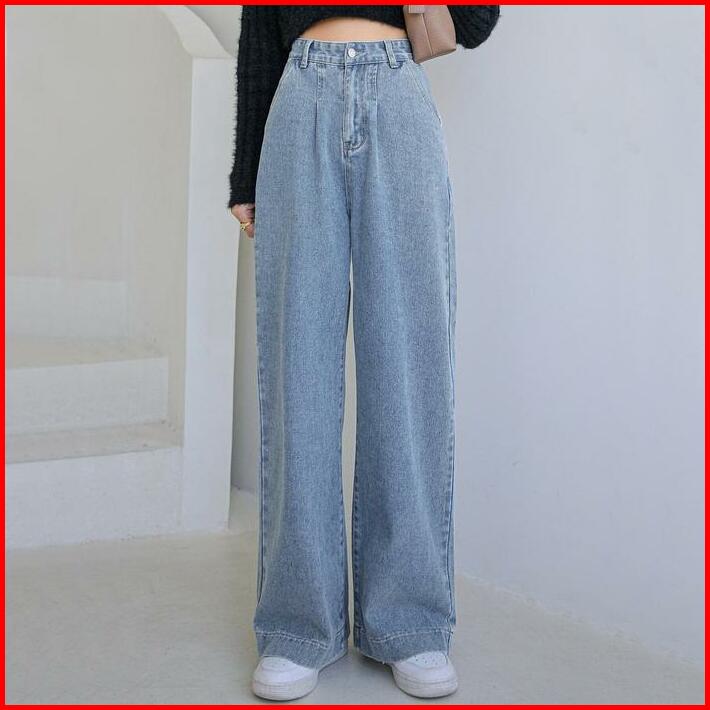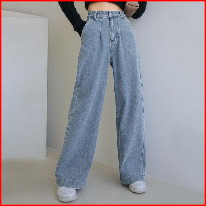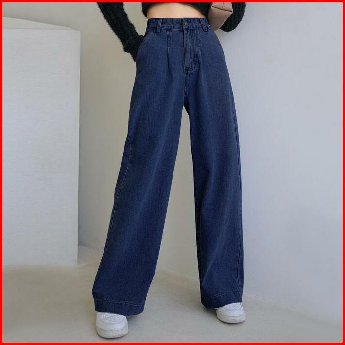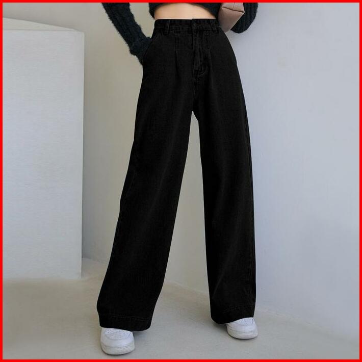 Baggy Jeans Wanita High Waisted Straight Solid Color Korean Style Celana Long Pants