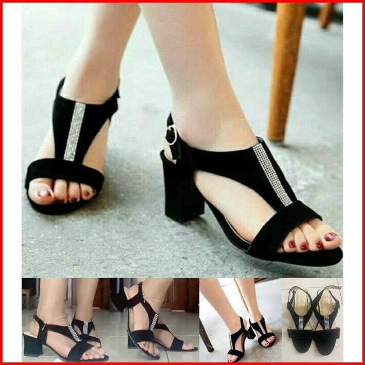Mivelshoes Sepatu Sandal Wanita Hitam Premium High Heels Hak 5cm Kekinian Kotak Tahu Pesta Kerja Kantor Kasual Formal Ko