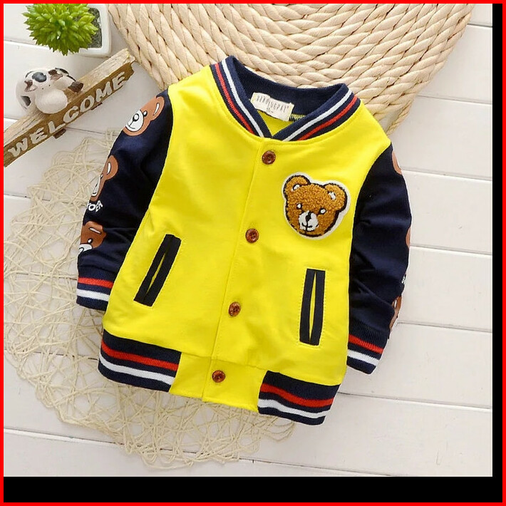 Jaket Untuk Bayi Motif Bear Warna Kuning Dan Navy