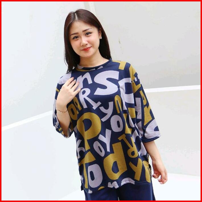 Valentfashion88 Setelan Wanita Oversize Abjad Babyterry