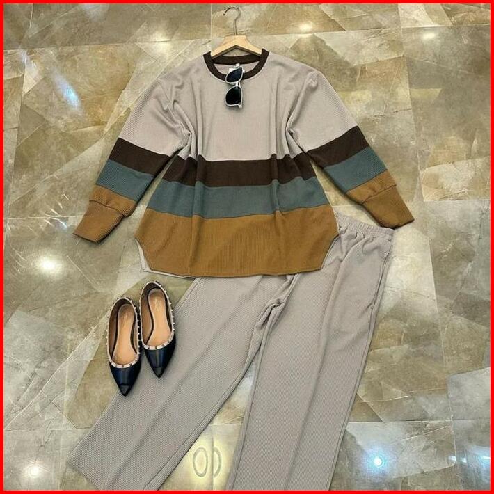 Jsf Oneset Wanita Kasual Model Terbaru Salsa Set Setelan Bahan Caramel Knite Kombinasi 2 Warna