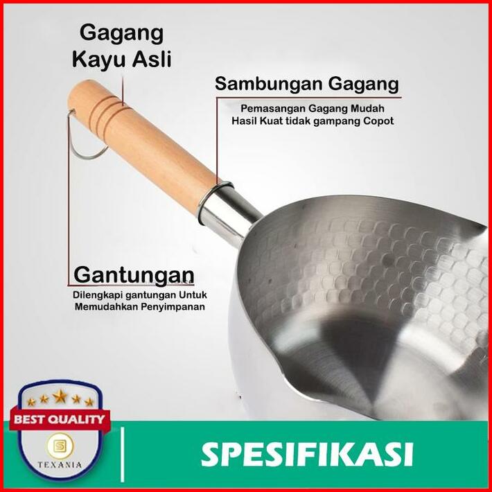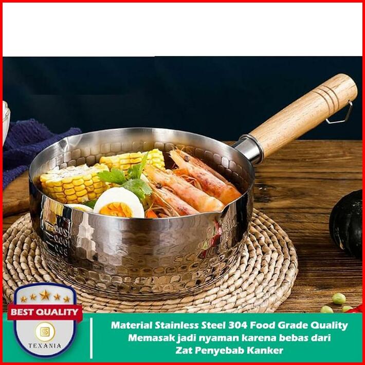 Funnycook Panci Mie Stainless 18cm 304 Food Grade Quality Gagang Kayu Asli 18cm Kitchenware